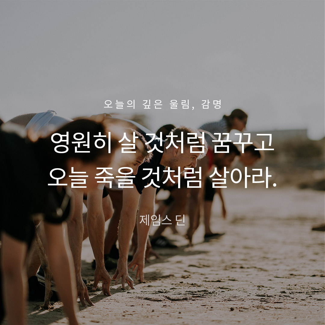 영원히 살 것처럼 꿈꾸고 오늘 죽을 것처럼 살아라.