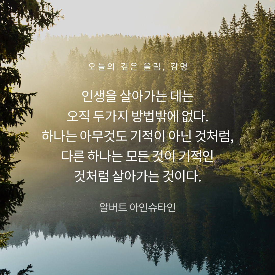 다른 하나는 모든 것이 기적인 것처럼 살아가는 것이다.